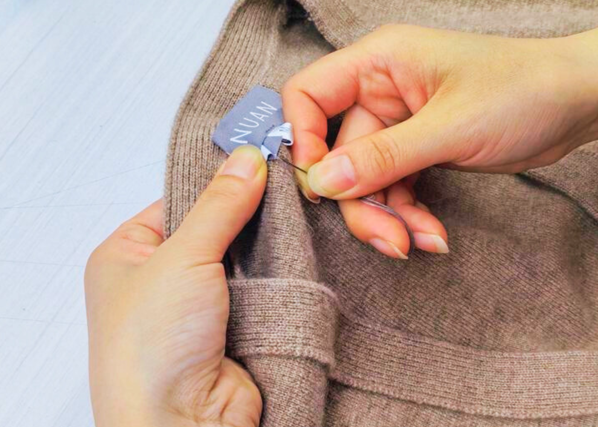 Our finishing team adds the final, thoughtful details: the NUAN Cashmere label, care instructions, and bespoke design elements that speak to our heritage. These subtle touches reflect our belief that luxury is found in every detail, even those unseen.