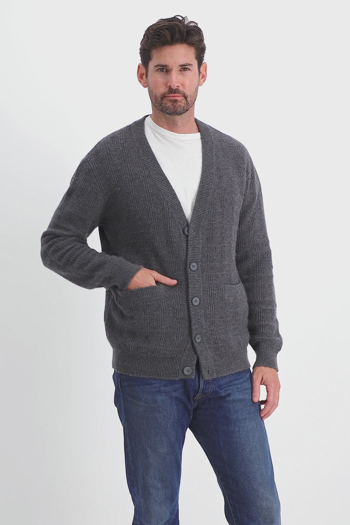 A refined essential for the modern wardrobe, this Men’s Cashmere Cardigan is crafted from luxurious cashmere in a textured cross-hatch knit for subtle depth and tactile interest. Designed with matching buttons and a polished silhouette, it combines timeless elegance with casual versatility. Perfect for layering over shirting or T-shirts, this cardigan delivers effortless style and enduring comfort.